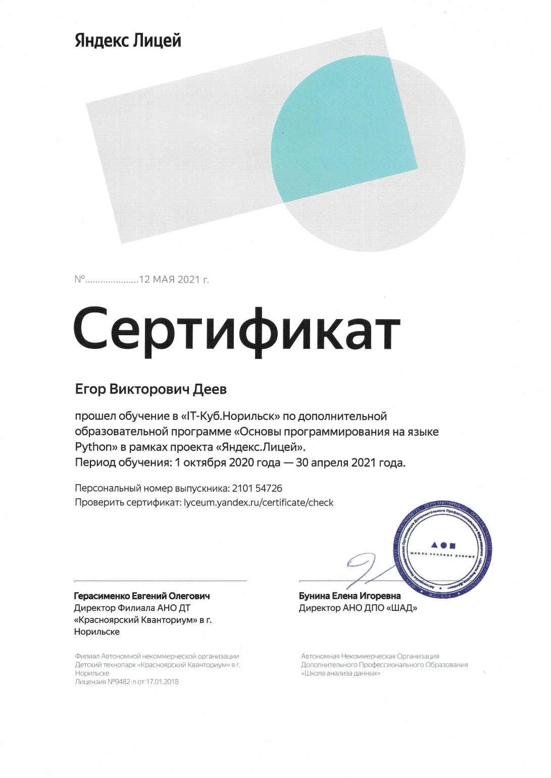 Я, Егор Деев, молодой специалист по C++ и Python, интересующийся самыми разными направлениями программирования, от веб-приложений до искусственного интеллекта. Мне всегда интересно узнавать что-то новое, и я готов учиться и развиваться в своей профессии. Если у вас есть предложения для меня, буду рад их рассмотреть.